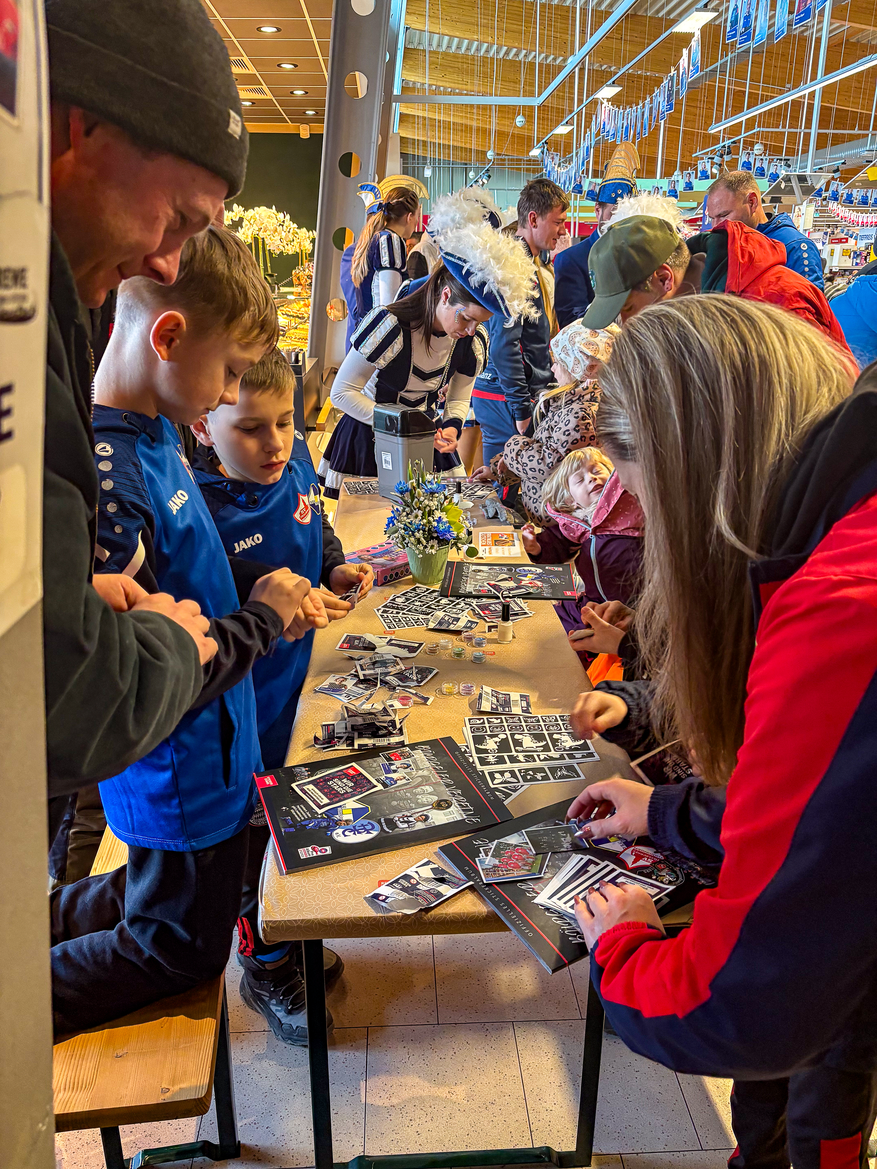 Für ein abwechslungsreiches Rahmenprogramm war bestens gesorgt: Ein Glücksrad lud zum Mitmachen ein, beim Kinderschminken entstanden kreative Motive und der Auftritt der Funken sorgte für tolle Stimmung im Markt. Gleichzeitig war das Interesse am Stickeralbum riesig – die ersten Alben und Stickerpacks waren stark gefragt und wurden begeistert gesammelt, getauscht und eingeklebt.