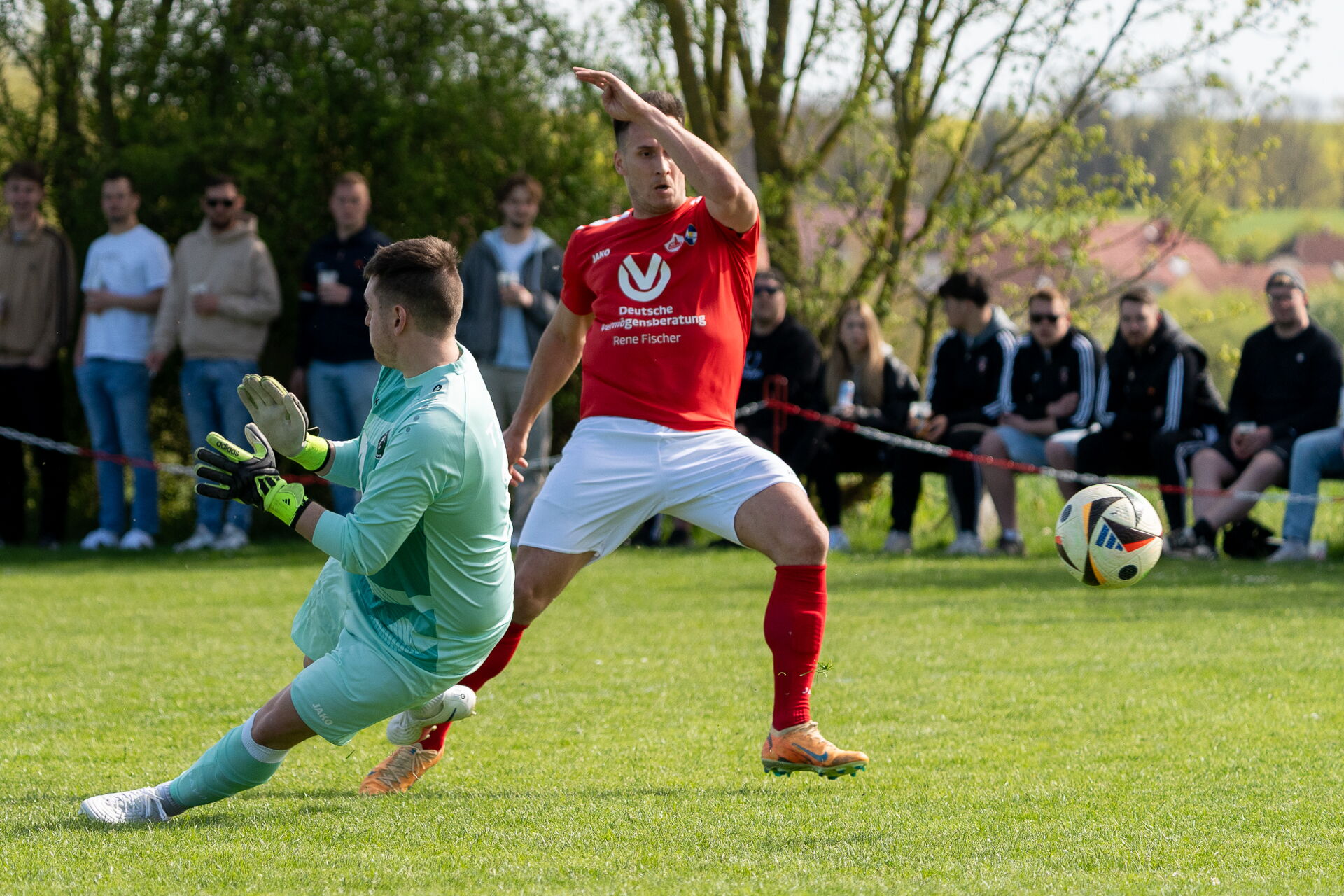 Dieser Plan ging zunächst auf: Nach einem langen Ball blieb Sergej Olenberg aufmerksam und brachte die SG in der 24. Minute mit 1:0 in Führung. Kurz darauf hatte Olenberg sogar die große Chance zum zweiten Treffer, scheiterte jedoch am Gästetorwart.